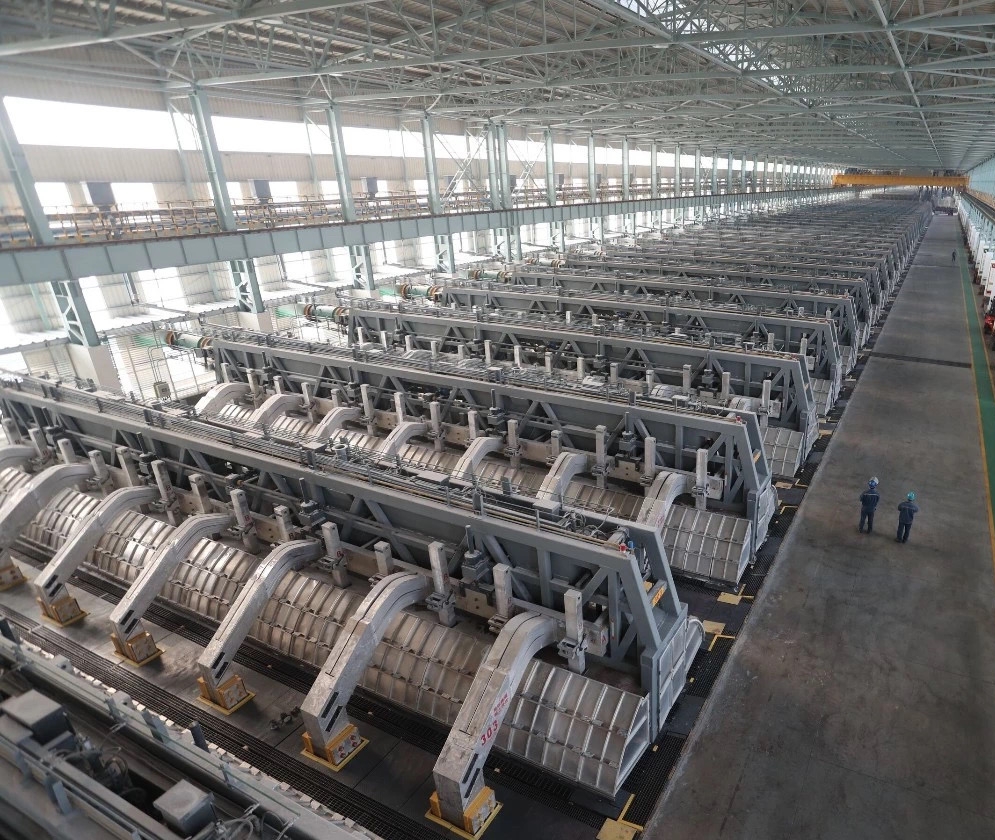 中國(guó)宏橋原鋁生產(chǎn)全部采用電流強(qiáng)度為400KA以上的大型陽(yáng)極預(yù)焙電解槽。其全球首條全系列600KA特大型陽(yáng)極預(yù)焙電解槽于2014年12月投產(chǎn)運(yùn)行,具有單槽容量最大、噸鋁投資最少、液態(tài)鋁質(zhì)量最好、能耗最低、生產(chǎn)環(huán)境最優(yōu)、自動(dòng)化程度最高、用工最少的優(yōu)勢(shì),在2015年6月5日通過(guò)了中國(guó)有色金屬工業(yè)協(xié)會(huì)科技成果評(píng)價(jià),整體技術(shù)達(dá)到了國(guó)際領(lǐng)先水平。